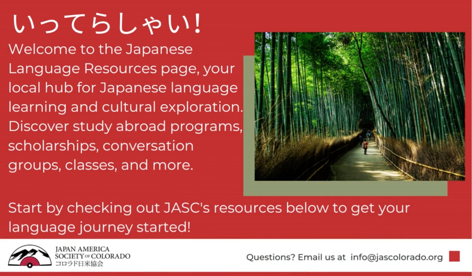 If you are a middle, high, or college-level student studying Japanese try your luck at our annual Japanese language competition. New in 2024, we will have an online grammar study guide available for students to reach their max potential!