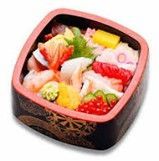 ちらし寿司は、関東と関西では特徴を異にします。 関東では器に酢飯を入れ、その上にエビやマグロなどの寿司ネタをきれいに乗せます。通常一人前ずつ盛り付けてあります。デンバー界隈の日本食レストランでもこのタイプのちらし寿司をよく見ます。このタイプのちらし寿司は、古くは江戸時代の大奥でも祝い膳として親しまれていた記録があるそうです。